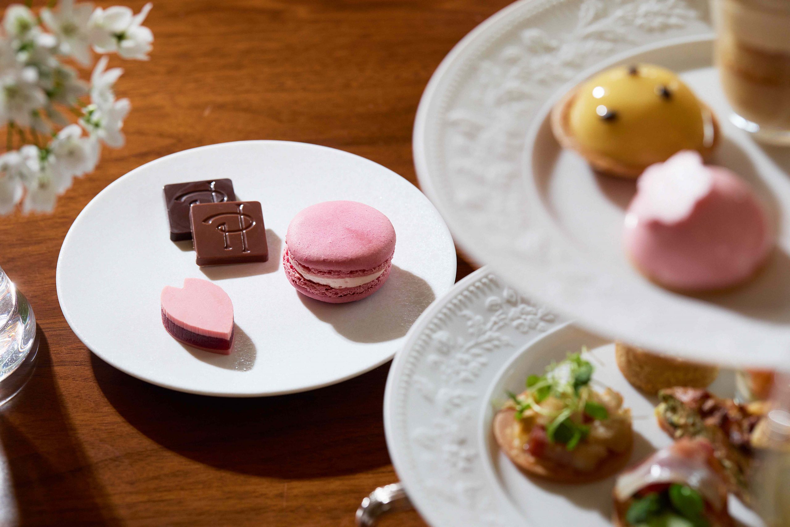 ピエール・エルメ・パリが手掛けるアフタヌーンティーでは、桜の花のフレーバーを表現した「ジャルダン ジャポネ」のケーキをご堪能いただけます。トンカ豆、レモン、グリオットチェリーが織りなす絶妙なハーモニーが春の訪れを感じさせます。桜の風味が香る特製スコーンとともに、優雅なひとときをお楽しみください。