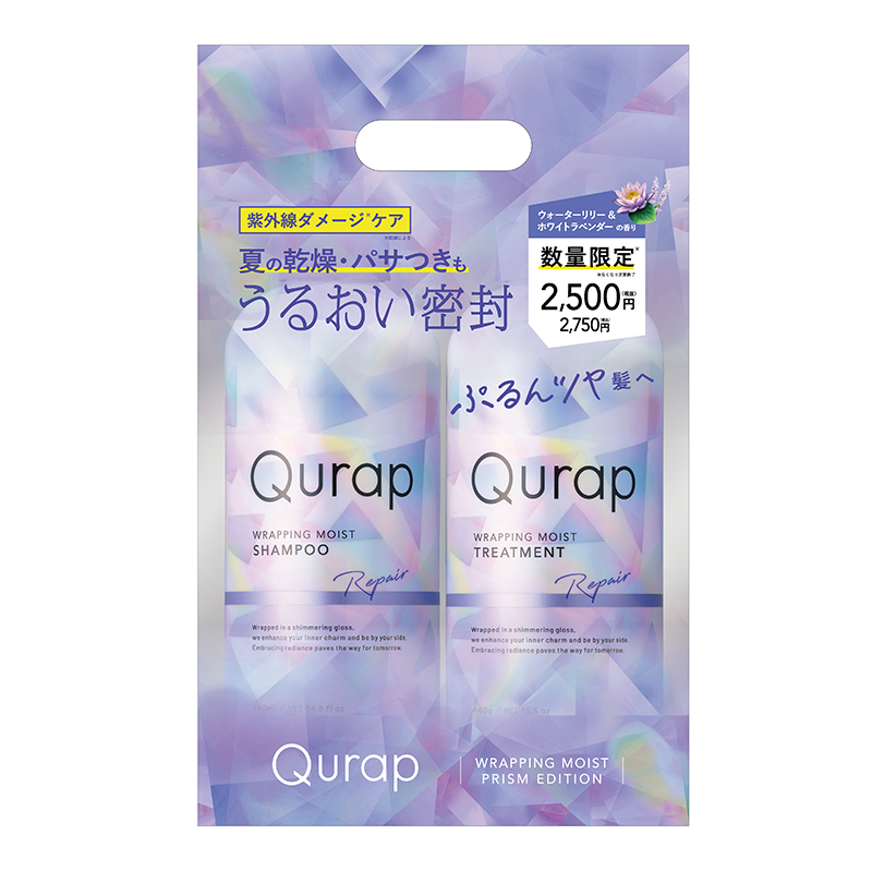 3種の*紫外線ダメージ**ケア成分***配合で“うるおい密封”ツヤ膜ラッピングシャンプー「Qurap」初の夏限定品がAmazonにて5/28から先行発売!夏のヘアカラーが映える、ぷるんツヤ髪へ ~ホワイトラベンダーとウォーターリリーのみずみずしく爽やかな香り~