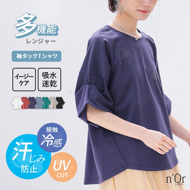 吸水速乾機能付きの袖タックTシャツは、雨に濡れても安心!