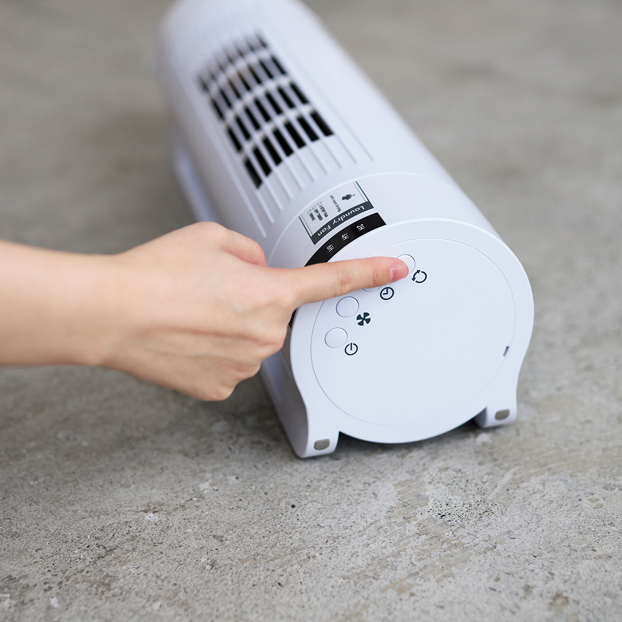 本製品は、部屋干し時に気になる「生乾き臭」や「乾きムラ」といった悩みに応えるため、独自の送風設計により効率的な送風を実現。垂直に吹き上げる送風と自動首振り機能で、洗濯物全体にムラなく風を届け、乾燥時間の短縮が期待できます。花粉やPM2.5が気になる季節でも、部屋干しで乾かせるのが大きな魅力です。コンパクト&軽量設計で、普段使いから梅雨時、冬場の室内乾燥まで一年を通じて幅広いシーンでご使用いただけます。