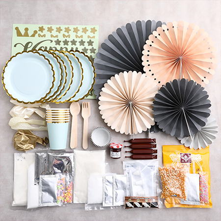 ❷アニバーサリーパーティーレッスン※2:スイーツ作りキットに紙皿やウォールデコまで揃うセット