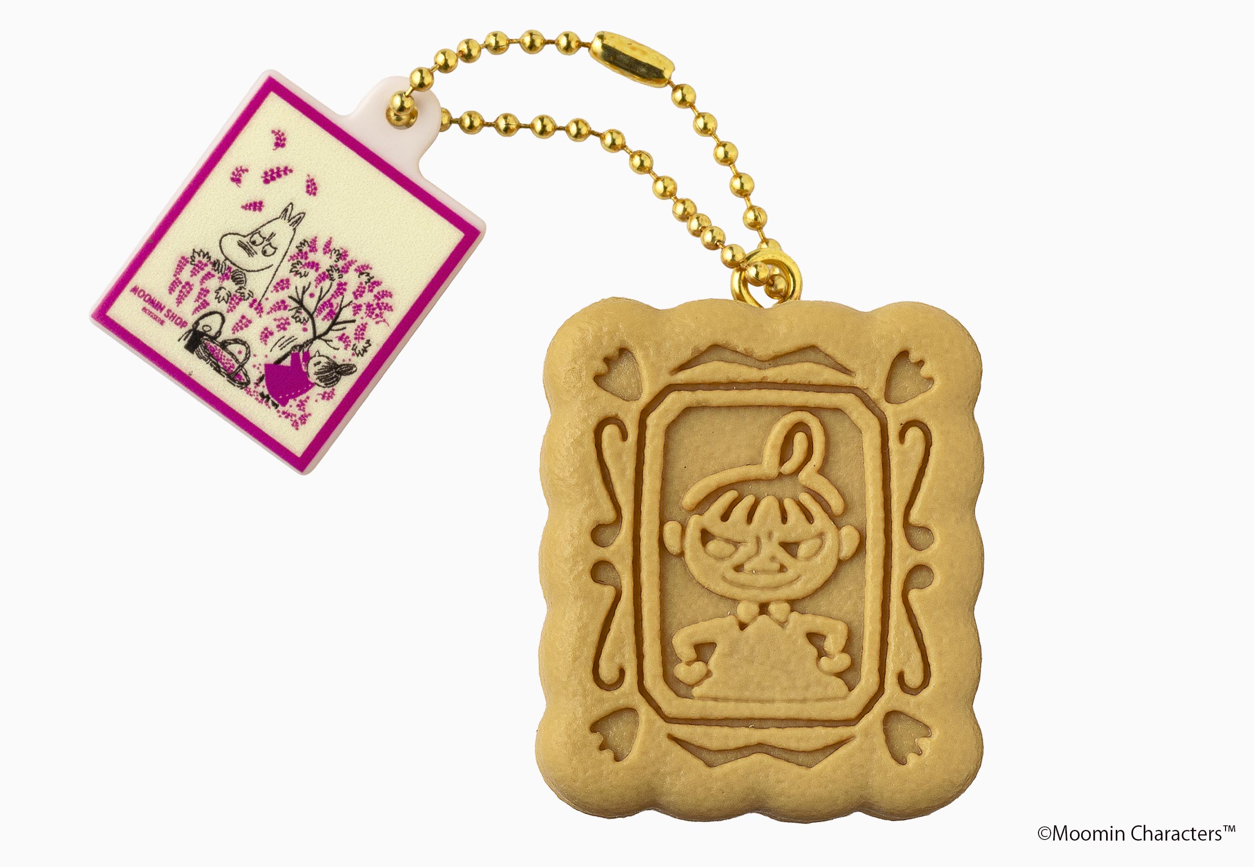 ニョロニョロのフォルムをイメージして焼き上げた、可愛らしいクッキーがカプセルトイに。窓を覗くムーミンのかわいらしいパッケージも付いています。