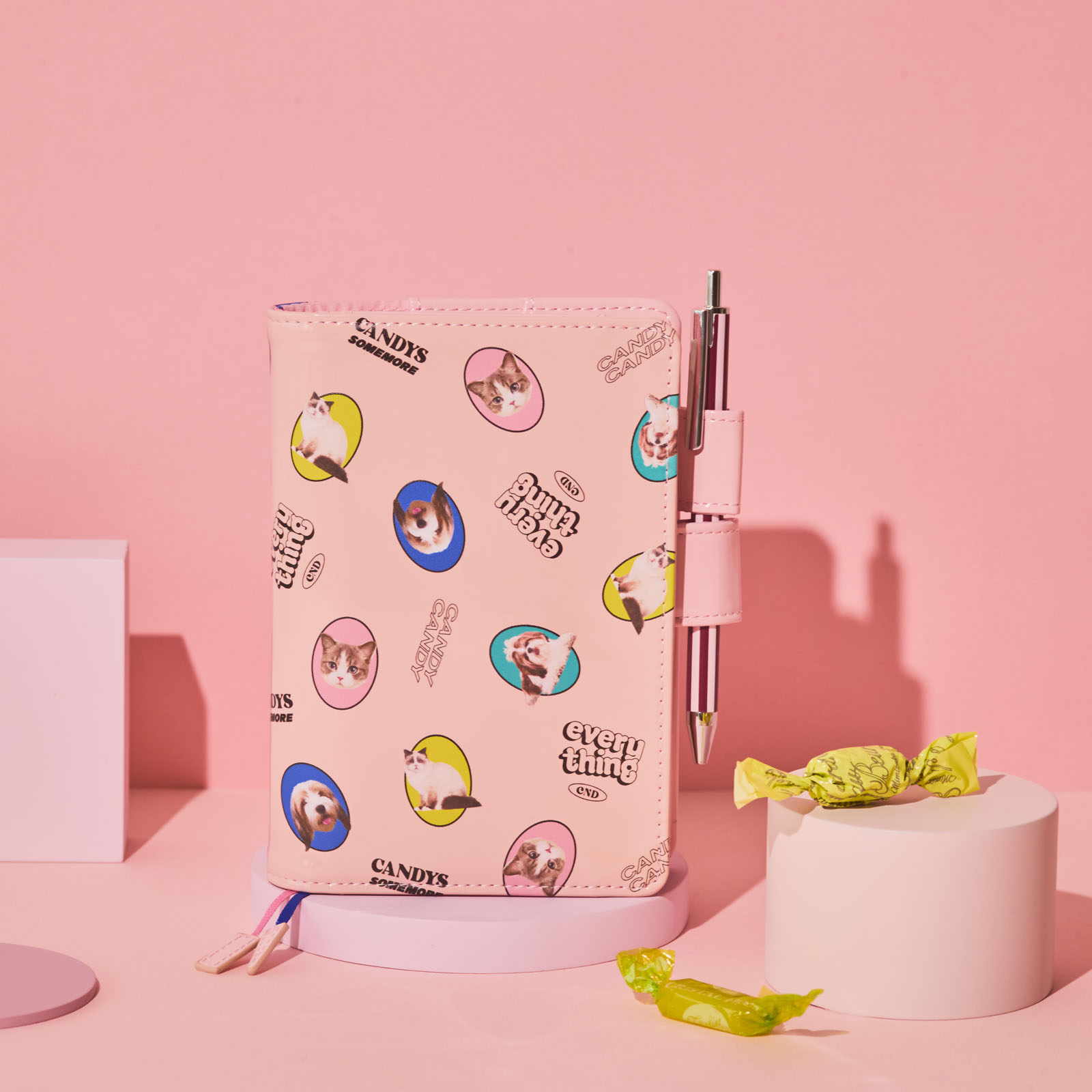 オリジナルサイズ(A6)手帳カバー「DOG&CAT RANDOM(pink)」