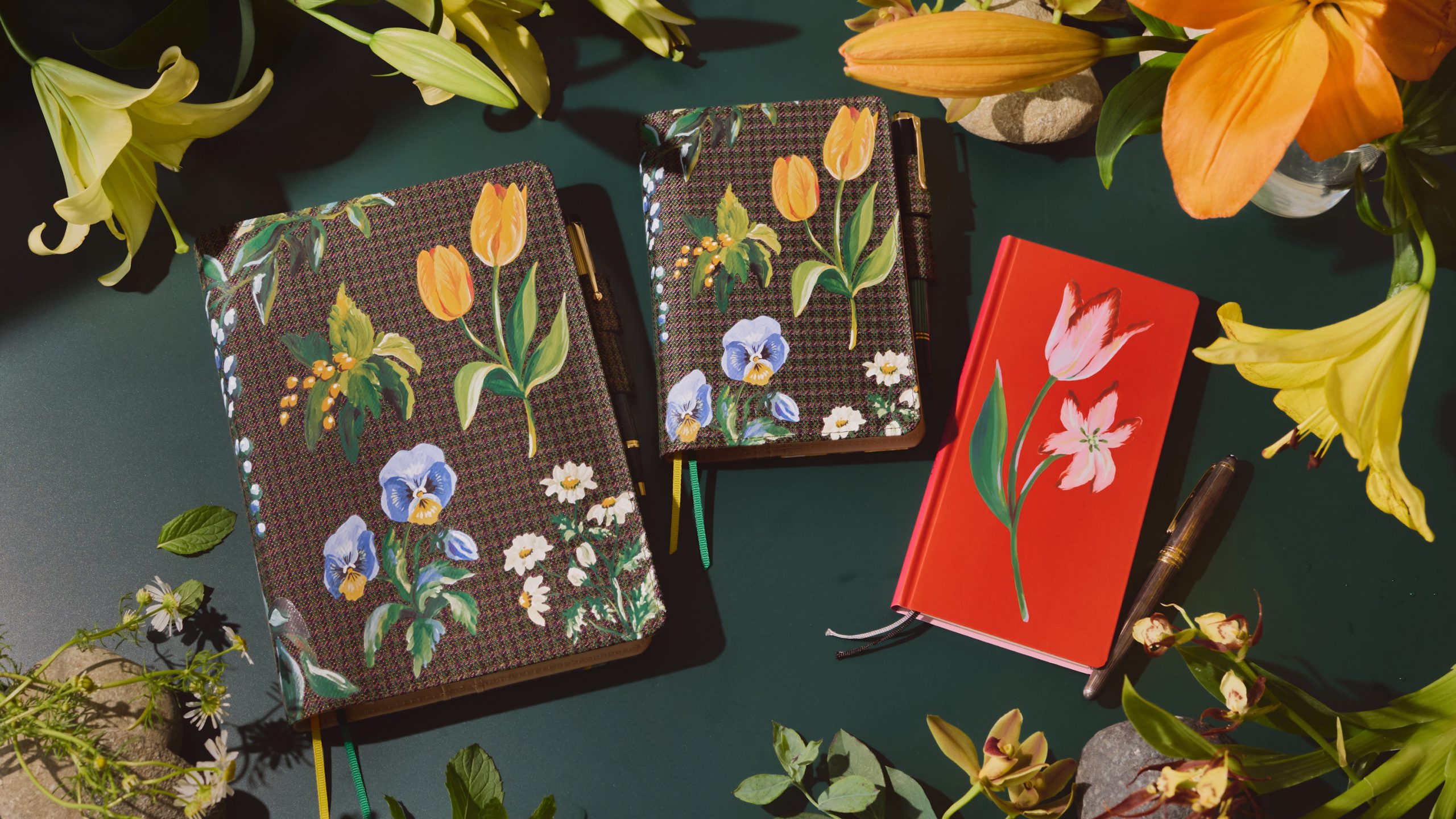 「絵を描くように自由に」をコンセプトに、デザイナー自身の描くドローイングを軸としたプロダクトを作るブランド「TOLIGHT」とコラボレーション。手帳カバーは、深い色味のジェントルチェックの生地に、筆で直接書いたようなくっきりとした花のプリントが目を惹くデザインです。weeksは、アクリル絵の具で描かれた瑞々しく鮮やかな花を表紙に大胆にレイアウトしました。どちらの花の絵も、ほぼ日記帳のために書き下ろしました。