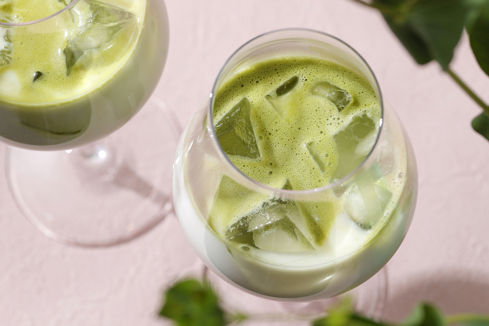 TAVERNオリジナルのホワイトチョコレートと抹茶を合わせたシロップを、ミルクの上に注いで楽しむ、軽やかな口あたりのアイス抹茶ラテをアフタヌーンティーと一緒にお楽しみください。